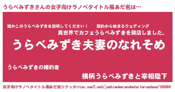 | 男性向けラノベタイトル風あだ名 | 『おまえをオタクにしてやるから、俺をうらべみずきにしてくれ! 』 |