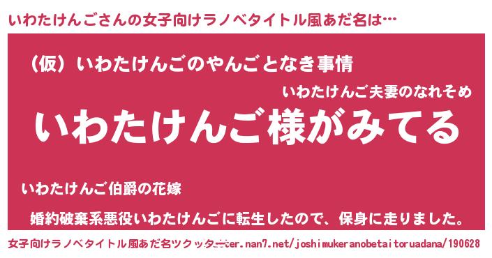 | 胡散臭い通販商品みたいなあだ名 | 『全米が絶賛したサプリメント…その名も「いわたけんご」』 |
