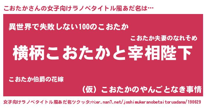 | 胡散臭い通販商品みたいなあだ名 | 『来世でも幸せになれる水素水…その名も「こおたか」』 |