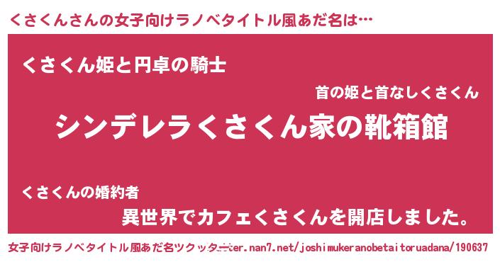 | 男性向けラノベタイトル風あだ名 | 『冴えないくさくんの育てかた』 |
