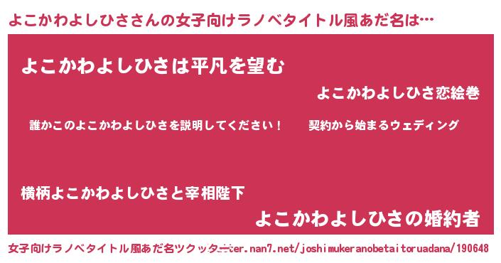 | 男性向けラノベタイトル風あだ名 | 『ヨコカワヨシヒサアートオンライン』 |
