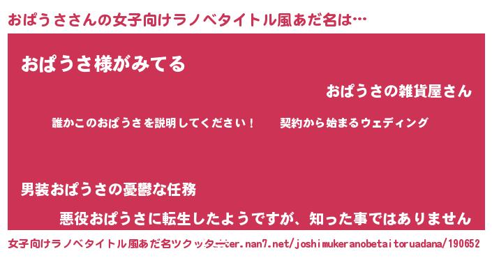 | 男性向けラノベタイトル風あだ名 | 『オパウサアートオンライン』 |