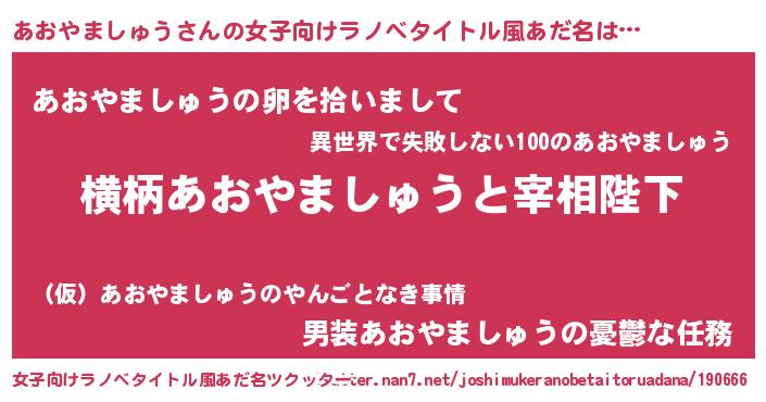 | ヘコむあだ名 | 『あおっ子』『あおやましゅう(小並感)』 |