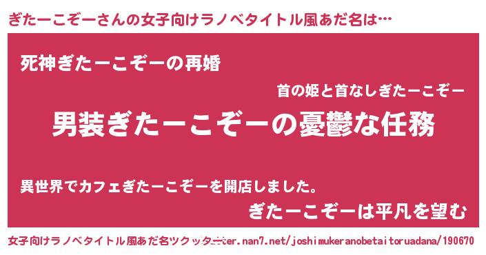 | ヒーロー風カッコイイあだ名 | 『慈愛の使者ぎたーこぞー』 |