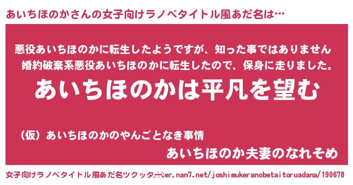 | 胡散臭い通販商品みたいなあだ名 | 『信頼と実績のネックレス…その名も「あいちほのか」』 |