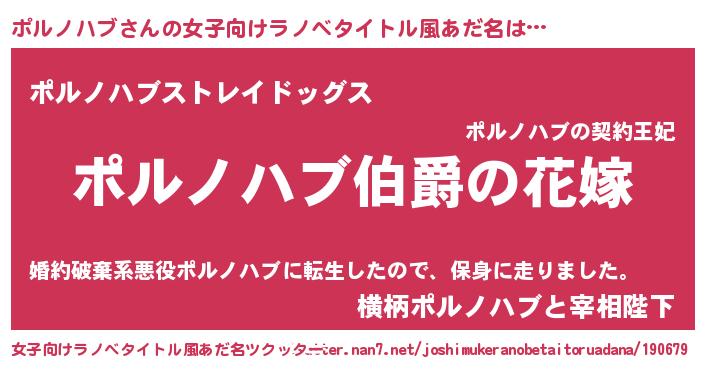 | 男性向けラノベタイトル風あだ名 | 『やはりポルノハブの青春ラブコメはまちがっている 』 |