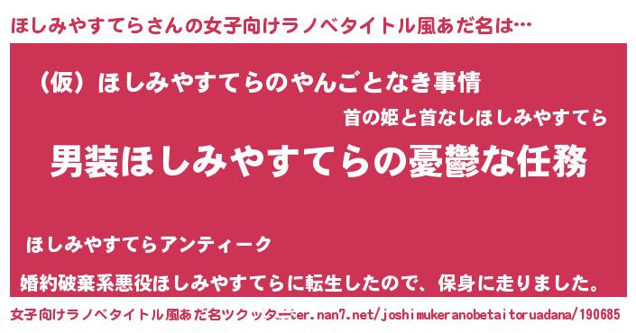 男性向けラノベタイトル風あだ名 | 『冴えないほしみやすてらの育てかた』 |