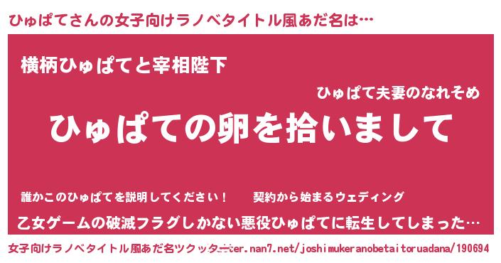 | 男性向けラノベタイトル風あだ名 | 『ダンジョンにひゅぱてを求めるのは間違っているだろうか』 |