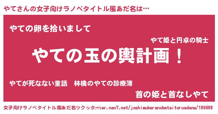 | ヘコむあだ名 | 『やてっぺ』『やてもー』『酢こんぶ』 |