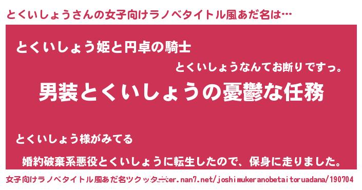 | 胡散臭い通販商品みたいなあだ名 | 『億万長者になれるブレスレット…その名も「とくいしょう」』 |