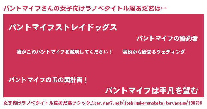 | 男性向けラノベタイトル風あだ名 | 『パントマイフアートオンライン』 |