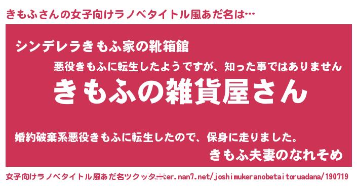 | 胡散臭い通販商品みたいなあだ名 | 『幸せが訪れる高級そうな壺…その名も「きもふ」』 |