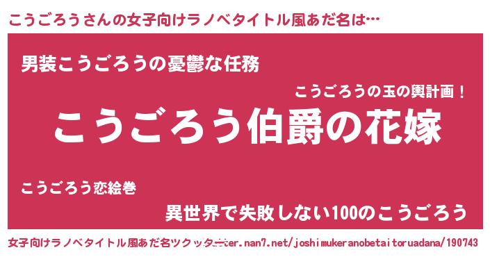 | 男性向けラノベタイトル風あだ名 | 『やはりこうごろうの青春ラブコメはまちがっている 』 |