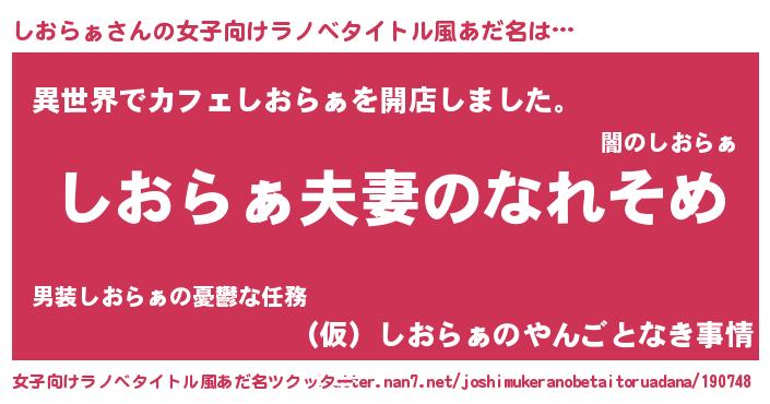 | ヒーロー風カッコイイあだ名 | 『正義の使者しおらぁ』『ネオシオラァ』 |