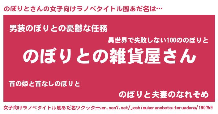 | 男性向けラノベタイトル風あだ名 | 『やはりのぼりとの青春ラブコメはまちがっている 』 |