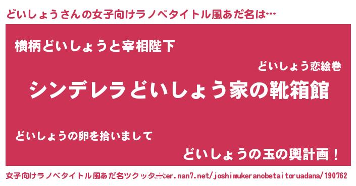 | 市区町村名 | 『どい田谷区』『名古どい市』 |