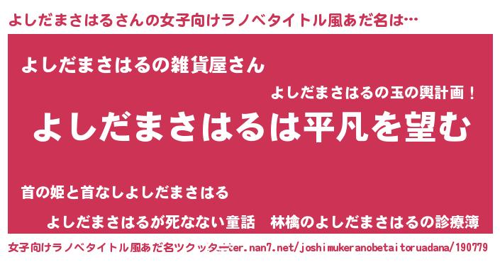 | 男性向けラノベタイトル風あだ名 | 『ダンジョンによしだまさはるを求めるのは間違っているだろうか』 |