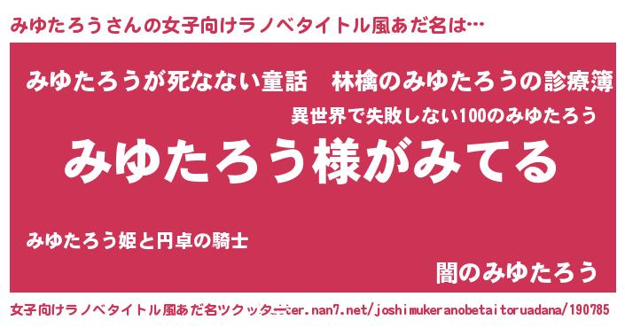 | 男性向けラノベタイトル風あだ名 | 『みゆたろうの嫁は女の子じゃないと思った?』 |