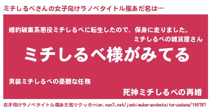 | 男性向けラノベタイトル風あだ名 | 『ミチしるべの嫁は女の子じゃないと思った?』 |
