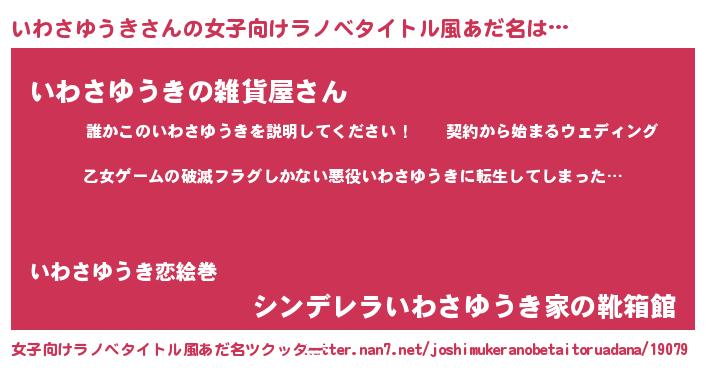 | 男性向けラノベタイトル風あだ名 | 『この素晴らしい世界にいわさゆうきを!』 |