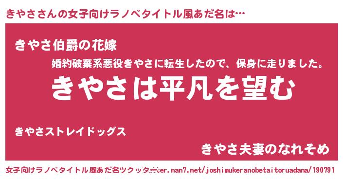 | 胡散臭い通販商品みたいなあだ名 | 『信頼と実績のネックレス…その名も「きやさ」』 |