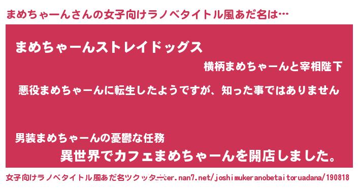 | 男性向けラノベタイトル風あだ名 | 『この素晴らしい世界にまめちゃーんを!』 |