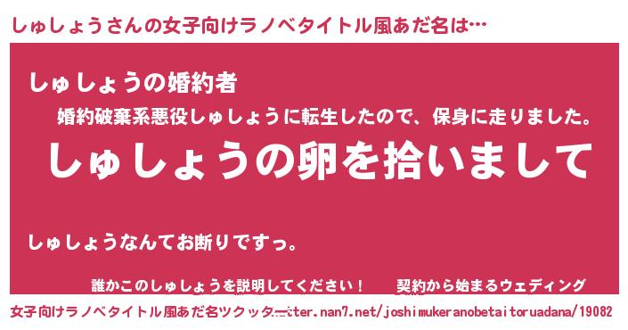 | 男性向けラノベタイトル風あだ名 | 『しゅしょうの嫁は女の子じゃないと思った?』 |