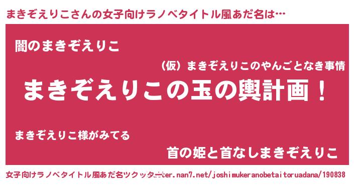 | 伝説のあだ名 | 『封印されし竜騎士まきぞえりこ』 |