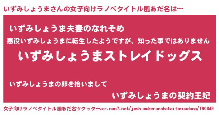 | 男性向けラノベタイトル風あだ名 | 『Re:いずみしょうまから始める異世界生活』 |