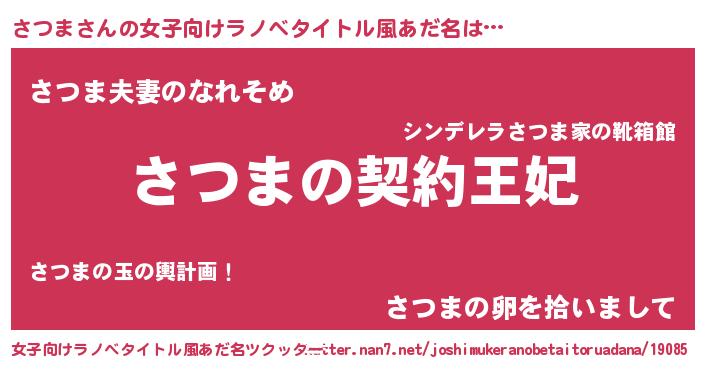 | 男性向けラノベタイトル風あだ名 | 『誰もが恐れるあのさつまが、ぼくの専属メイドになるようです。』 |