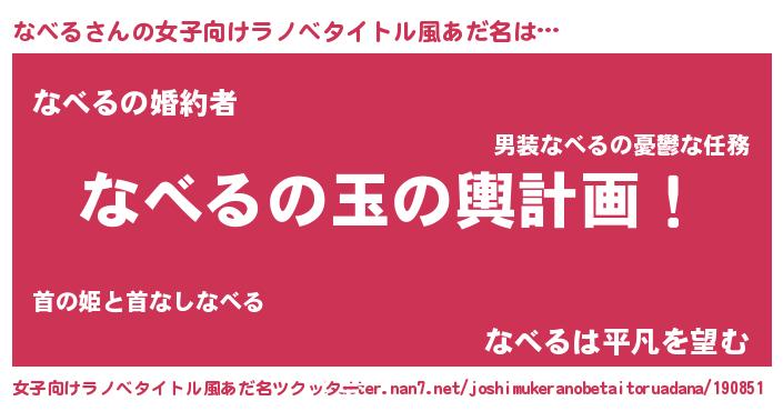 | 意味不明あだ名 | 『もやし科なべる属』『自称なべる』 |