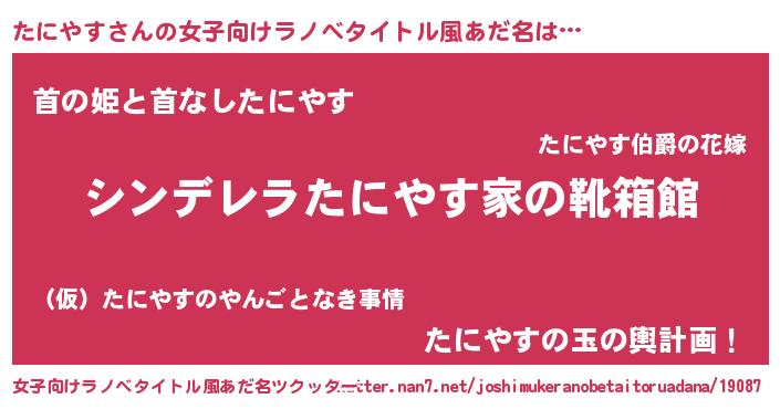 | 男性向けラノベタイトル風あだ名 | 『冴えないたにやすの育てかた』 |