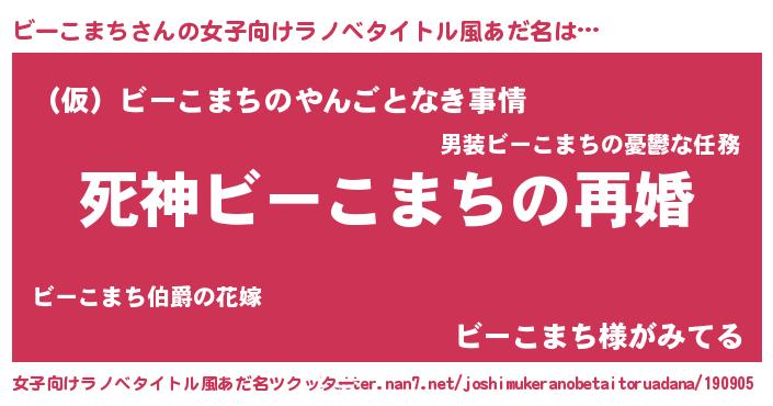 | ヒーロー風カッコイイあだ名 | 『天空の使者ビーこまち』『炎刃騎士ビー』 |
