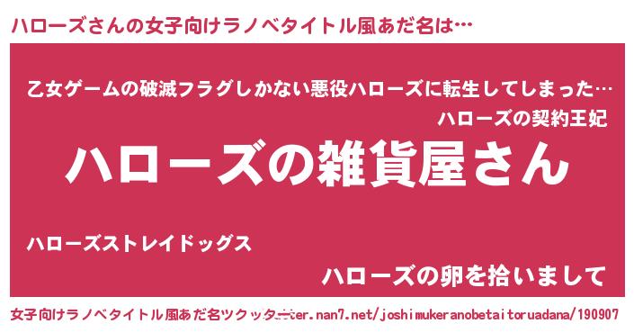 | ヒーロー風カッコイイあだ名 | 『ウルトラハローズマン』『仮面ハロダー』 |