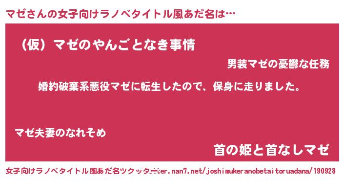 | 胡散臭い通販商品みたいなあだ名 | 『必ず成功する霊験あらたかなお札…その名も「マゼ」』 |