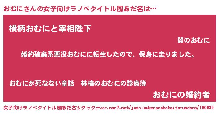 | 男性向けラノベタイトル風あだ名 | 『オムニスレイヤー』『魔弾の王とおむに』 |