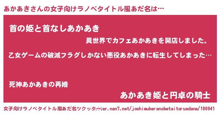 | 意味不明あだ名 | 『住所不定無職あかあき(59歳)』 |