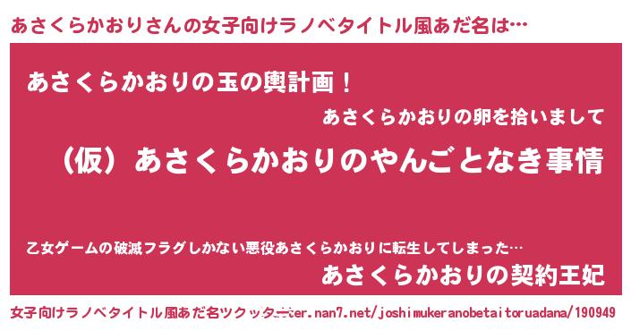 | 男性向けラノベタイトル風あだ名 | 『あさくらかおりの憂鬱』 |