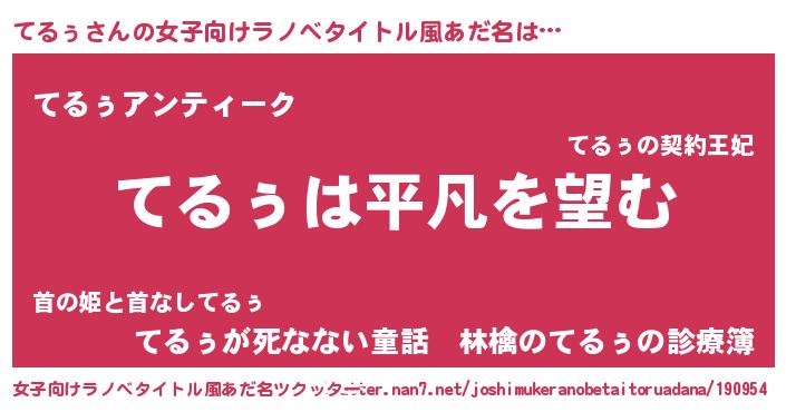 | 男性向けラノベタイトル風あだ名 | 『ダンジョンにてるぅを求めるのは間違っているだろうか』 |