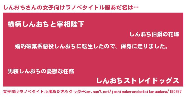 | 男性向けラノベタイトル風あだ名 | 『転生したらしんおちだった件』 |