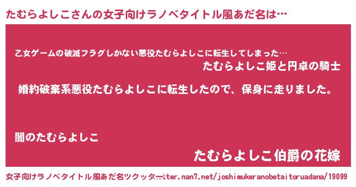 | 胡散臭い通販商品みたいなあだ名 | 『ハリウッド女優が絶賛した100年もののヴィンテージワイン…その名も「たむらよしこ」』 |