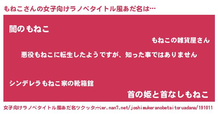 | 欧米人風あだ名 | 『ダレノガレもねこ』『もねこクリステル』 |