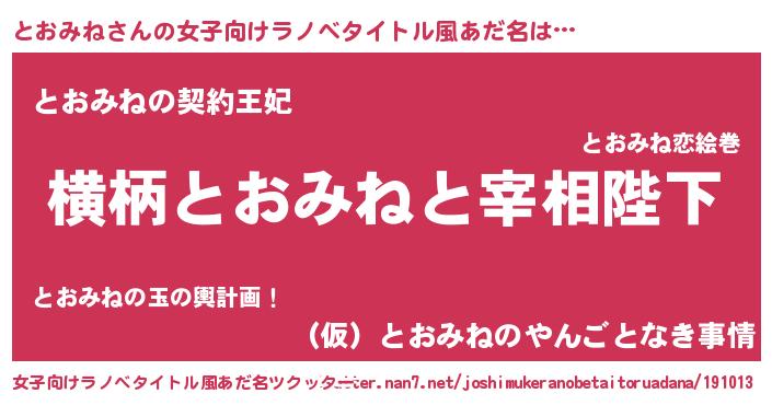 | ヘコむあだ名 | 『とおみね(笑)』『とおにー』 |