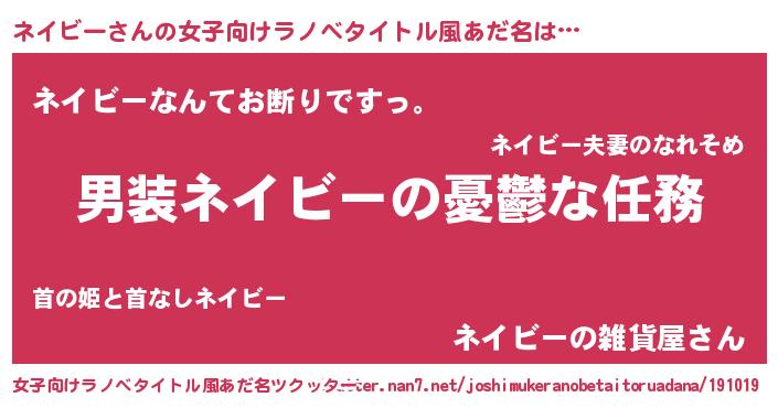 | 男性向けラノベタイトル風あだ名 | 『うちのネイビーが世界を掌握している!』 |
