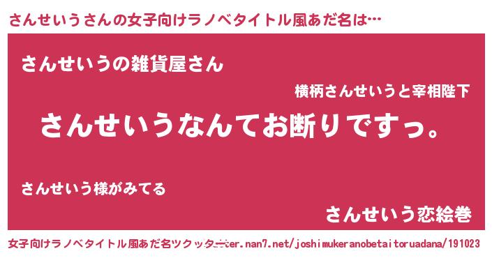 | 意味不明あだ名 | 『自称さんせいう』 |