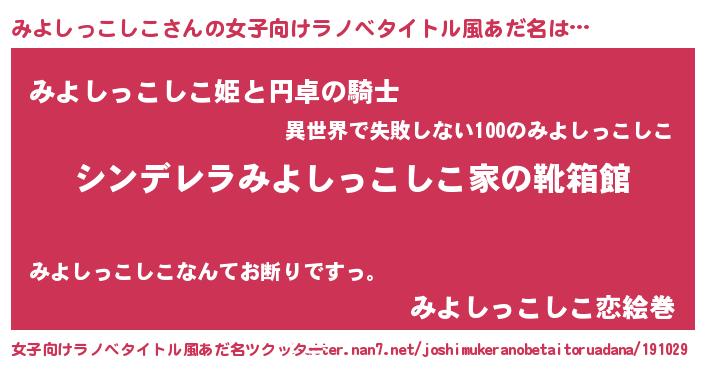 | ヒーロー風カッコイイあだ名 | 『スーパーミヨシッコシコ』 |