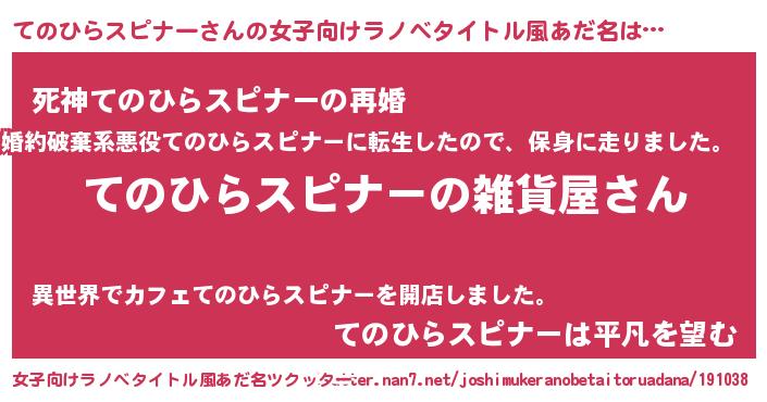 | 男性向けラノベタイトル風あだ名 | 『やはりてのひらスピナーの青春ラブコメはまちがっている 』 |