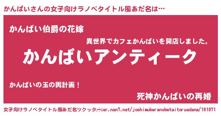 | 意味不明あだ名 | 『自称かんばい』『かんばいフォーエバー』 |