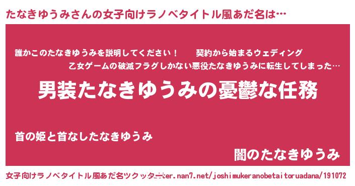 | 胡散臭い通販商品みたいなあだ名 | 『億万長者になれるブレスレット…その名も「たなきゆうみ」』 |