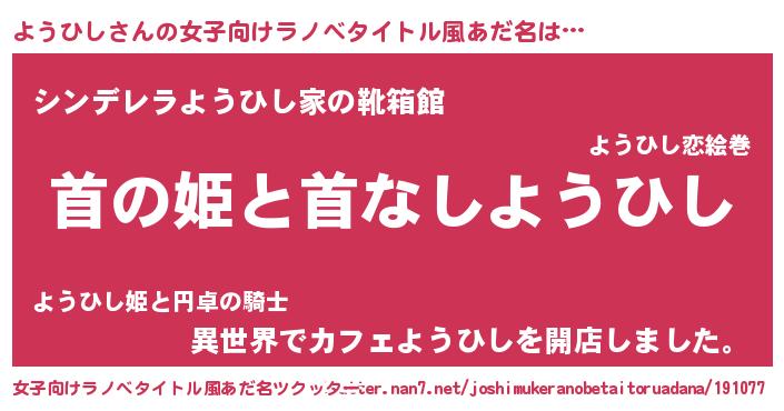 | ヒーロー風カッコイイあだ名 | 『ネオヨウヒシ』『友情の使者ようひし』 |